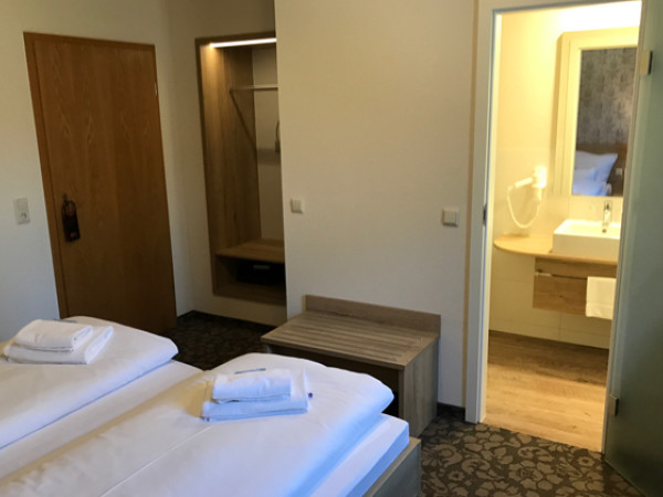 Alle unsere Zimmer – 9 Einzelzimmer und 12 Doppelzimmer – haben Dusche, WC, Selbstwahltelefon, TV und Parkplätze vor dem Haus.